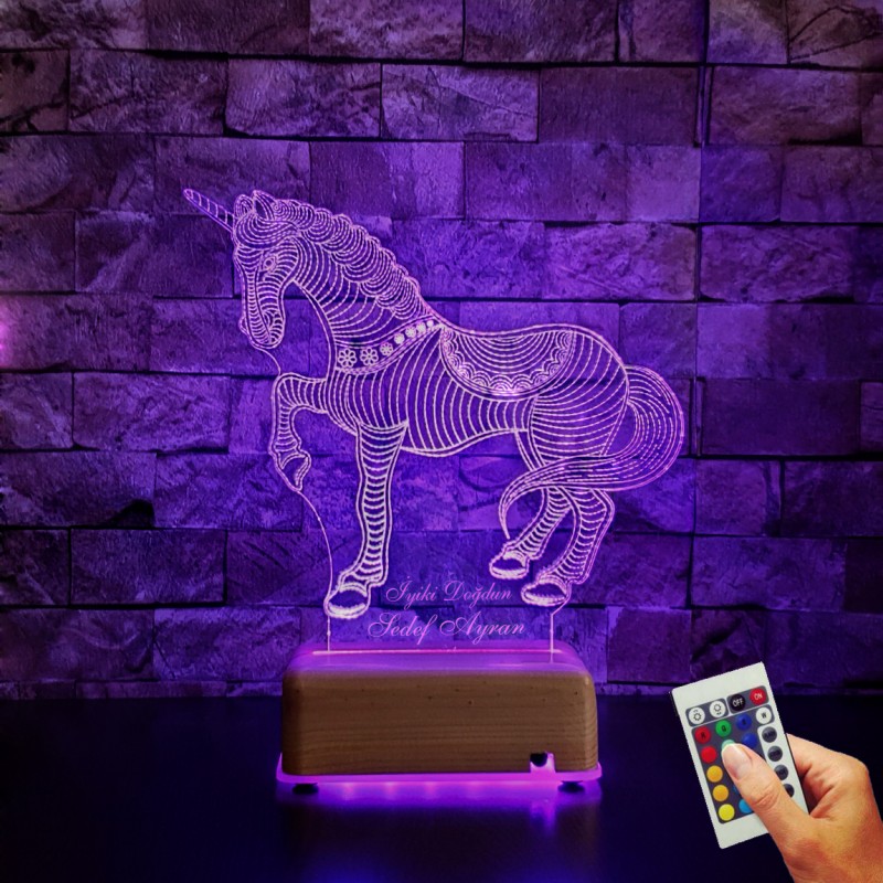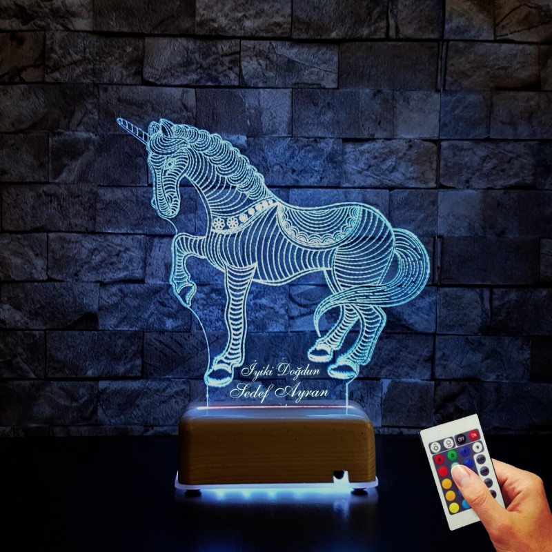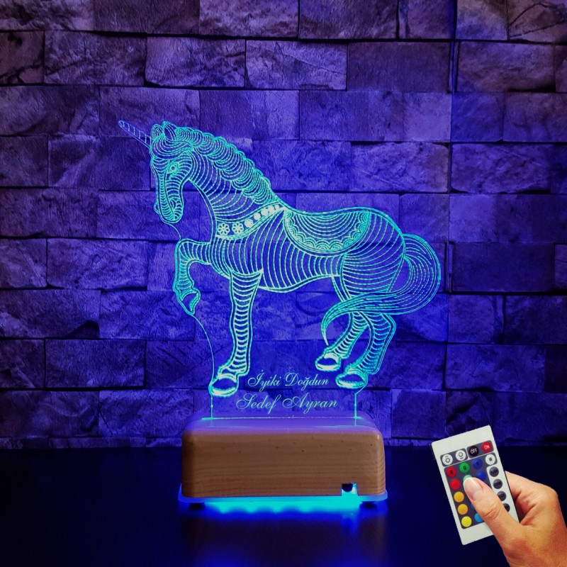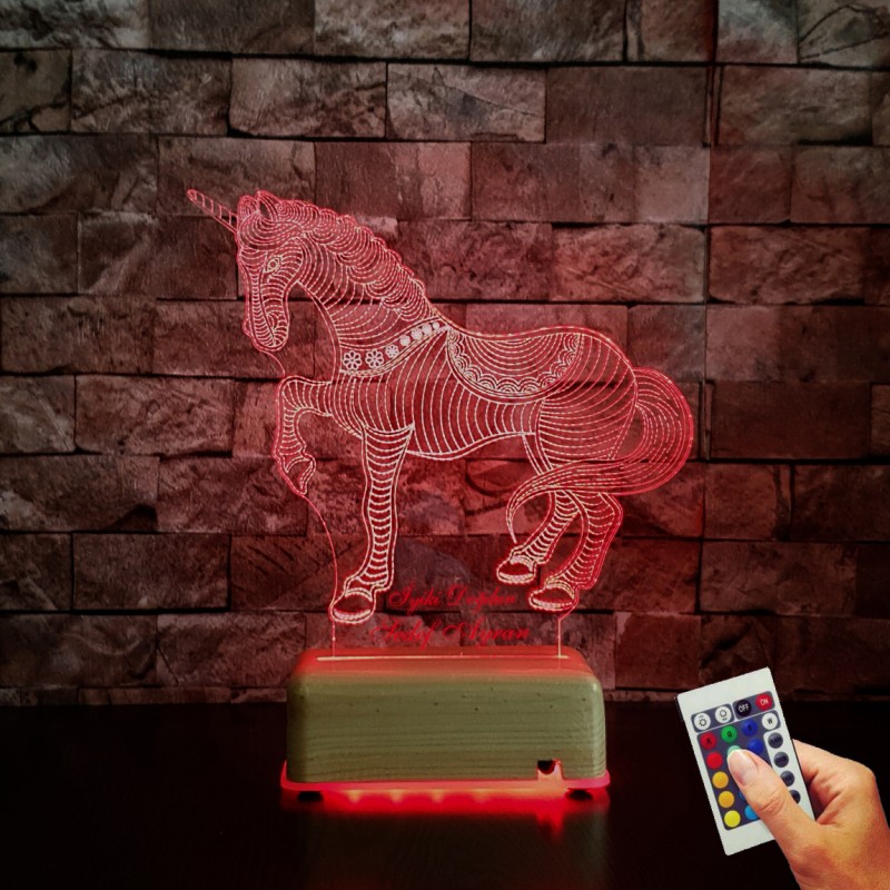 Doğum Günü Hediyesi İsimli Masa Lambası Unicorn At İsimli Gece Lambası