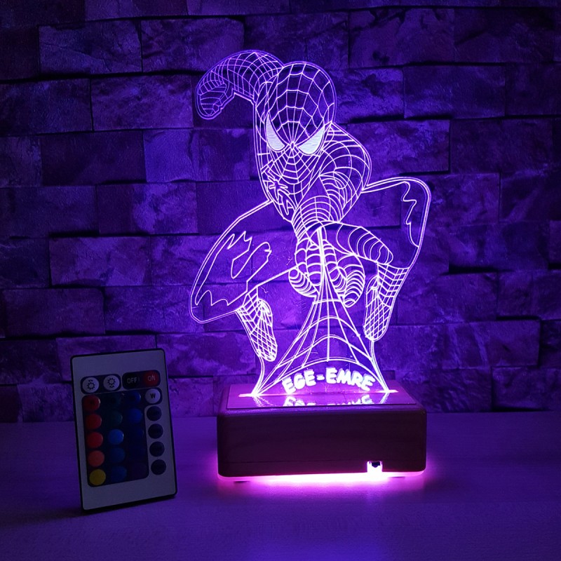 ÖRÜMCEKADAM 3 BOYUTLU ÖZEL İSİMLİ LED LAMBA - DEKORATİF 3D LED LAMBA