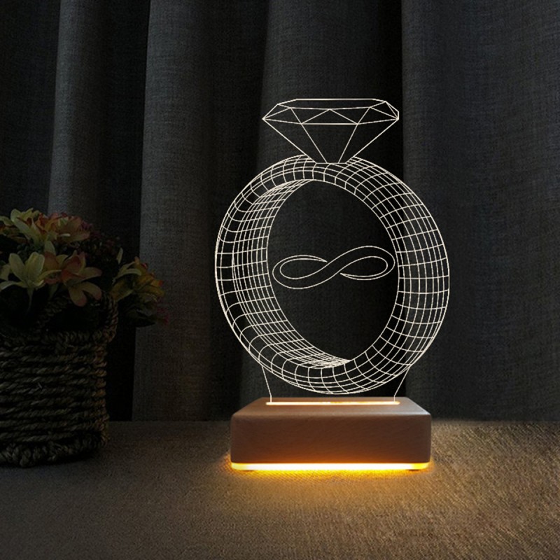 3d Masa Lambası Sevgiliye Hediye Teltaş Yüzük Tasarım Gece Lambası
