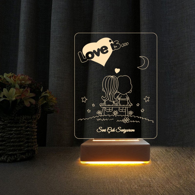 Sevgili Hediyesi Love Is Tasarım 3d Led Gece Lambası Aşk Lambası
