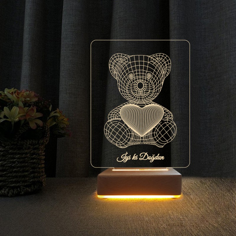Doğum Günü Hediyesi İyiki Doğdun Yazılı Ayıcık 3d Gece Lambası